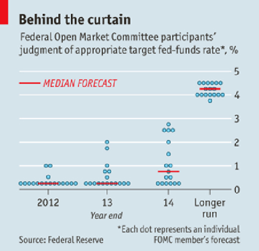 On the same day Federal Reserve for the first time published projections of the year individual members of the Federal Open Market Committee, its main policymaking body. Expect the federal-funds rate to start rising and the path it would follow over the next three years.