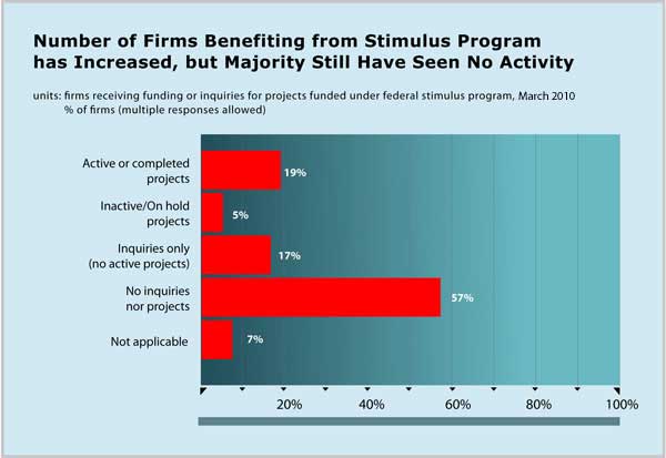 Still, a year into the program, a majority of architecture firms (57 percent) still report neither projects nor solid inquiries for projects. This brings into question how much has federal stimulus affected the building industry and subsequently helped out the landscape industry.