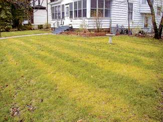 • Use a rotary spreader, which applies fertilizer more evenly, allows for a quicker application, and helps avoid a striped fertilizer pattern in the grass.