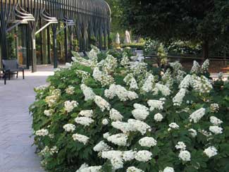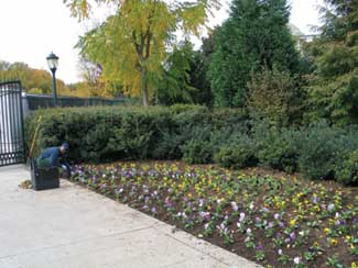Mr. Burrows at Pinehurst deals with maintaining 70 acres. His grounds crew plants 138,000 annuals (grown in Pinehurst?EUR??,,????'???s 17,280 square feet of greenhouses, cares for .7 acres of annual beds and some 10,600 bulbs. Mr. Kaufmann has only 6.1 acres to deal with, but the property is on the Washington Mall, better known as the ?EUR??,,????'??clay swamp.?EUR??,,????'?? When the garden was installed (opened in 1999) about three feet of soil (clay) was removed and replaced with a custom soil blend?EUR??,,????'??+about 77 percent sand and the rest organic matter. Some plant beds have required greater drainage mitigation.