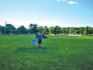 The staff performs aerifying in May and August in an effort to avoid the main playing seasons. They overseed all of the playing surfaces with bluegrass. In the fall during the football season, perennial rye mix is used for divot repair.