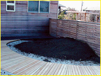 Following refurbishment of the 2-level house, with a new raised pool, deck and fencing, the client approached Town and Gardens, Ltd. to address code requirements for the soil grade. Soil levels had to be raised around the pool?EUR??,,????'???s sloping facades and the base of the fence to omit any clearance that could promote a fire hazard on the 10,000 square foot property.
