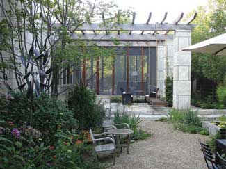 Located in the heart of Chicago, the garden for this urban residence balances the client’s desire to feel a connection to city life while maintaining a sense of privacy and space to appreciate natural beauty. Residents enjoy views of a courtyard, gravel garden and broad lawn from within their home throughout the seasons. A screened porch links the intimate gravel garden with the side garden, and is blanketed by a green roof that cools the open-air space in the summer.
