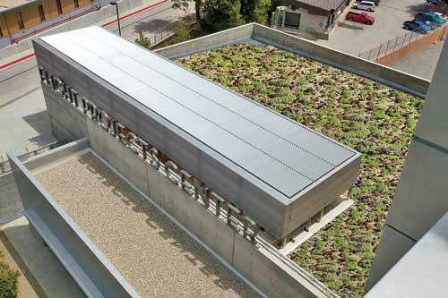 NASA’s Jet Propulsion Laboratory, Pasadena, Calif. The Jet Propulsion Laboratory, designed for NASA features drought-tolerant and native plant materials, water-efficient landscape irrigation and high-efficiency drip irrigation on the auditorium’s green roof. The green roof insulates the auditorium, reduces noise and HVAC usage and costs, lessens the heat island effect (further minimizing HVAC usage), performs stormwater management and provides garden views for those on the upper floors. These features reduce the demand for potable water for irrigation by 80 percent, and helped JPL become NASA’s first completed LEED Gold facility.