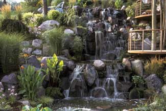 ?EUR??,,????'??We realized the pooling areas between the cascades would be fairly small due to the amount of vertical drop,?EUR??,,????'?? explains Christopher Kane. ?EUR??,,????'??These areas were especially important because we relied on them to house the aquatic plant life. A combination of boulders and gravel were used to create planting pockets along the shoreline. All of these areas were eventually planted with an array of marginal aquatics. The pools with the proper depth, which had less turbulent waters, were heavily planted with lilies. We also incorporated aquatics within the falls that would eventually creep down the stonework and create a dramatic appearance,?EUR??,,????'?? he added.