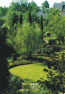 Design: Looking across the estate grounds, a large weeping willow provides the focal point for the north garden. The estate entrance connects the porte coch????+re with a drive that leads back to the motor court. The Italian marble fountain is a replica from a French estate.