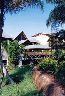 Design: The waterway arrival features a replica Clipper airplane. Simulated rice paddy terraces reinforce the theme.