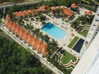 The private gardens above a parking garage; the villa gardens separating the villas and the tower with private gardens; and the major pool area to the far left. A recreational pool and gardens above a parking garage incorporates private garden cabanas. Pelican Bay, a series of high rise residential developments awards from the Florida Chapter of ASLA, American Association of Nurserymen and Florida Nursery Growers and Landscape Association.