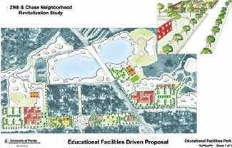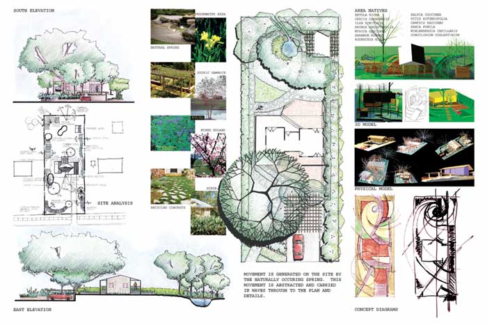 Student work shows strength in ecologically-based planning and design, urban issues, and conservation?EUR??,,????'??+all issues of strategic concern not only in Florida. While most projects are based in Florida or the southeastern US, international projects are common. Classes have traveled to Nantucket, Barbados, Italy, Paris, and Costa Rica. Students often see their work implemented. Student work has been put into working documents by regional professionals for such diverse projects as the American Orchid Society National Headquarters, Winn-Dixie Hope Lodge, and the Department of Defense Joint Interagency Task Force, among others. Quality of student work is well recognized. Most recently, three of the 17 2004 ASLA Student Awards went to UF students, and four students placed in two national competitions. In attaining this high quality of student work, two issues are critical?EUR??,,????'??+student initiative and faculty support. In recent years, two undergraduates won national research awards without taking any formal research-methods courses?EUR??,,????'??+they wanted to pursue projects with a strong research component and they found faculty willing to guide them above the usual classes or advisory positions.