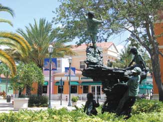 The Bell Tower is the icon for Weston Town Center. It serves as the terminus of Main Street at the transition point to the pedestrian plaza and lakefront promenade. Miller Legg was responsible for engineering design, planning and landscape architecture on this project. For comfortable pedestrian use of Weston Town Center, large overstory palms and canopy trees were integrated into the design. Several relocated live oaks were used to provide shaded seating and gathering areas throughout.