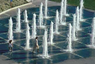 Fountains are such a common sight in public spaces and on corporate campuses that most people don't give them much thought, but simply enjoy their beauty and the movement of their waters. And that's the way it should be. A person walking on the beach generally doesn't think about the greater density of seawater to fresh water, or that there's a salinity of about 35 parts per thousand. The beach stroller is taking in the great expanse of water, perhaps contemplating the infinite and taking pleasure in watching the swell of waves and their cascading crash to shore. Water has magical qualities-the way it catches light and its infinite iterations of supple movements and flows.
