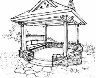 The next great influence on the landscape came when our kids were suddenly teenagers. With the play lawns and swimming pool established, we continued sculpting the landscape to allow for camp-outs, places for hanging out with groups of friends and a volleyball court. Our firepit area was expanded into a campground and multi-level terraces with sitting walls and overhead shelters were added.