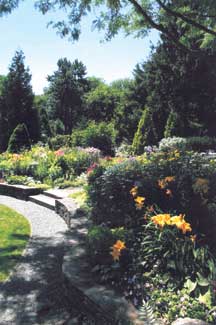 One major consideration, which we tried to adhere to even in the early years, was ease of maintenance. The whole family chips in to mow and trim. My wife tends the vegetables and I maintain the perennials, hosta beds, annuals and tree trimming. In order to persuade the children to participate, the bedlines were laid out in large sweeping curves, creating areas of circular lawn areas.