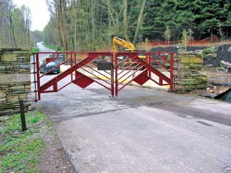 Frank Lloyd Wright designed a gate for the iconic Fallingwater home, though it was never built. However, in the early 1990s, landscape architect George Longenecke, a Fallingwater consultant, took Wright?EUR??,,????'???s gate design and modified it for use as the ground?EUR??,,????'???s entrance. The gates went up in 1995 at the entrance to the property, but were removed in 2004 when the entrance was redesigned.