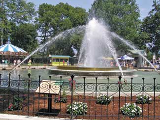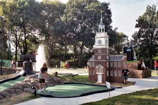 300 years after Penn completed his city plan, the five squares are lush urban landmarks, places of retreat, refuge and even inspiration. The fourth is the hub to which all roads in the city lead to City Hall. Franklin Square, closest to the historic district, is a lovely park, with miniature golf, a playground, its old fountain, and a carousel.