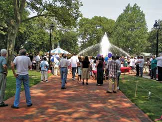 While these additions might appear simple, there were several challenges that Pennoni encountered during the revitalization. One of the main goals of the design was to retain the park’s atmosphere created by large shade trees and open lawn areas. In order to save as many of the existing shade trees as possible, the new paths were carefully regraded to improve drainage and rebuilt in the same location as the previous paths. Much of the new electric and stormwater piping was installed under the paths to limit the disturbance of tree roots. Many new shade trees were added as well, along with ornamental landscaping around the entrances. Another challenge Pennoni faced in rehabbing the park was protecting the First German Reformed Church’s burial ground, whose site is in the square. An on-call archeologist was retained to identify historic artifacts if unearthed. And if watching out for graves was not enough, there was also the issue of an underground New Jersey Transit subway tunnel that traverses the park. By designing improvements, stormwater management, new utilities serving the park’s attractions, and an ADA compliant comfort station around the known and expected grave sites, Pennoni was able to limit conflicts.