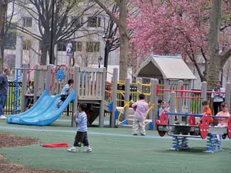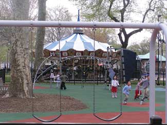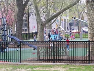 From the current look of the park, it is hard to imagine that it was ever a desolate and abandoned blot on the landscape. New entrance ways and signage were constructed and styled to fit with the rest of the park. “Gateways” were put in at 7th Street, as well as 6th Street to help draw in foot traffic from the nearby National Constitution Center. Picnic tables and park benches for story tellers were set up to provide for more passive recreation, in addition to the other attractions. Along with the other many renovations most notably the two age appropriate playgrounds, Franklin Square is now on par, if not better then its four sibling parks.
