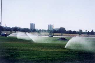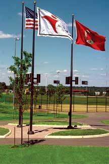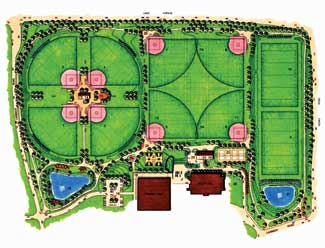 The Wheel: Designed at the western third of the site, accommodates four softball fields combined with four flag football fields overlaid in the softball field outfield areas. A service building/shelter is situated in the hub of the four softball fields. The service building houses an equipment storage area, men?EUR??,,????'???s and women?EUR??,,????'???s restrooms and picnic shelter area. The Square: The central area contains four more softball fields which includes as an overlay in the softball outfield area, six flag football fields, two lacrosse practice fields, two rugby practice fields and two practice soccer fields as alternating fields. The Rectangle: The eastern end of the site accommodates two regulation size rugby fields with an overlay for two lacrosse fields, two soccer fields, four flag football fields and ultimate disc playing fields.