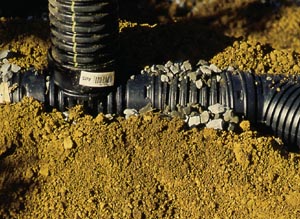 When installing fittings and junctions it is important to use drainage tape to secure these fittings. Without the use of drainage tape there is the chance that the fittings will come apart during installation. If Y connections and lateral lines are being used in the design, they should be connected every 10 to 15 feet in order to "wick" out the subsurface water. In heavier clay soil conditions, the lateral lines should be installed at a shorter distance.