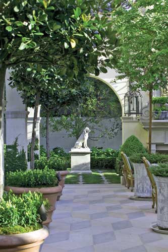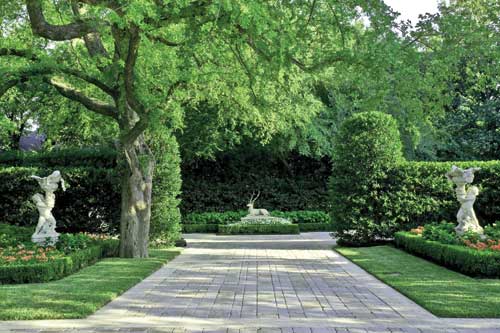 How does the landscape architect create a garden of such timeless design? ?EUR??,,????'?????<?A great garden is a garden that has style,?EUR??,,????'?????<? explains Paul Fields, ASLA, president and director of design for Lambert. ?EUR??,,????'?????<?For a garden to evoke a sense of style, it must be designed with deliberation. A fine garden design seamlessly complements the architecture of a home and blurs the interior and exterior living spaces. I am drawn to and most enjoy designing gardens that have a sense of containment or open-air rooms. These spaces form great backdrops for plantings, specimen trees, benches and garden ornaments. As outdoor rooms, they should have openings along axes that draw us from one space to another. Each space should be designed with a deliberate purpose in mind, be it usage such as a pool for swimming, a quiet contemplative space with a bench, or the celebration of a garden ornament or piece of sculpture.?EUR??,,????'?????<?