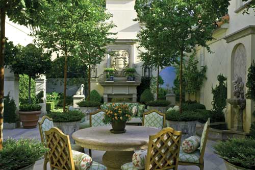 Arcade Terrace The arcade garden terrace, formally the site of a greenhouse, bears no resemblance to its former self. Intrigue, deception, luxury, contrast and excitement all describe the feelings one experiences when approaching this space. Truly an extension of the home?EUR??,,????'?????<???EUR?s interior, though it is completely plein air.