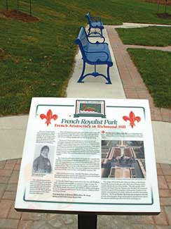 French Royalist Park commemorates a unique group of early Richmond Hill residents ?EUR??,,????'??? the de Puisaye settlers from France who settled in this area in a community officially known as Windham, in the closing years of the eighteenth century.