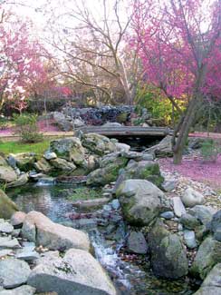 The garden is arranged in a horseshoe shape and is divided into four quadrants dedicated to each season of the year. In 2001, park volunteers raised more than $70,000 to replace soil cement paths with textured and colored concrete ones that are ADA compliant. The rest of the park features trees and plants that are grouped by season. The spring portion, for example, is filled with camellias, azaleas, daffodils, forsythia, flowering cherry and crabapple. Deciduous trees offer foliage and shade in the summer section. The fall section shows off trees of dramatic autumn foliage?EUR??,,????'?????<??oeChinese pistachio and tulip trees among them. Conifers of several species populate the winter part.