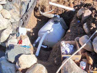 Flexibility was a major part of the solution according to the design/installer. For instance, he wanted to minimize the use of poly vinyl chloride (PVC), as he claims the plastic is more detrimental to those who produce it and the environment as a whole compared to polyethylene (poly). However, three connections required specialty fittings only available in PVC from Australian companies.