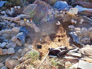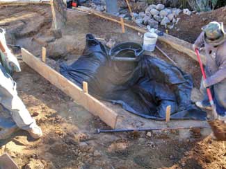An unpleasant surprise was the discovery that the water feature excavation area had been used as a car part dumping ground by a previous owner some 30 years ago. As a result, the subgrade was full of rusted, sharp car parts and shards of glass. The result was a need for a particularly cautious and thorough excavation to protect against injury and water feature leaks. The parts were also recycled in compliance with the environmentally friendly goals of the project and Wilson?EUR??,,????'?????<????????????EUR??,,??s business.