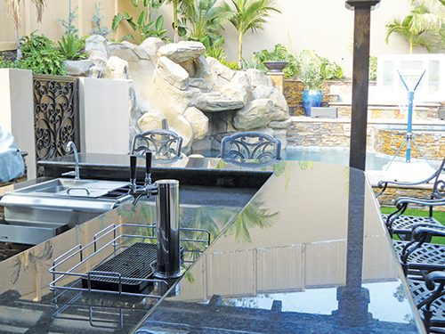 The landscapers translated the client's wish list into a dream yard, designing the area to function in compliance with city codes (set backs, height restrictions, lot area calculations, fencing, grading and drainage issues), and meeting the client's budget criteria. The end result was a collaborative effort that included, Ken Fritts of Palos Verdes Pools and Alan MacGregor, ASLA. Sandi Fields Landscape Design did the design and landscaping; Fritts completed the pool and hardscape installation; MacGregor designed the overhead patio cover. From demolition to completion in February 2014, the job took seven months.