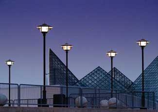 Who better than an experienced lighting fixture manufacturer to provide and coordinate all these elements in a cohesive site plan? Phil Graham, FASLA, a St. Petersburg, Florida-based landscape architect, has built a career partly on such total thinking. “Urban architecture must integrate landscape elements as well as lighting,” he says. “A total site design should provide a unique visual experience not only at night when lights are on, but also during the day when, for some projects, more people use the site for work, shopping or recreation. The goal of every lighting designer to create a rich architectural and aesthetic experience,” he continues. “If we are working on a city, municipality or other community, one approach for the design professional is to take the unique characteristics of the site and its existing architecture, incorporating the design elements into the projects.”
