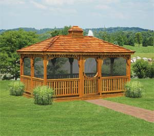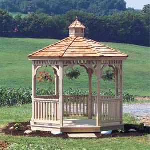 Some people fancy their gazebos as extensions of their houses, even designing them to reflect the d????(C)cor, including matching shingles. The ultimate retreat, the gazebo also makes a spectacular place for a wedding and reception. People also use them to host brunches, luncheons, showers, teas, cocktails, dinner parties, and other affairs, ranging from barbecues to black tie. Gazebos have also become favorite locations for hot tubs and are simple to obtain and just as easy to maintain. Companies such as The Cedar Store allow you to select a pre-designed gazebo, or customize one for yourself.