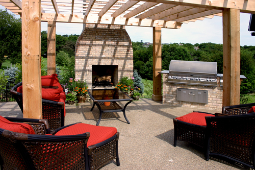 Grills - 97.4 Fire pits/fireplace - 95.8 Seating/dining areas - 95.7 Lighting - 93.1 Installed seating (benches, seat walls, ledges, steps, boulders) - 86.9 Weatherized outdoor furniture - 81.2 Counter space - 76.0 Stereo systems - 57.8 Refrigerators - 55.5 Sinks - 53.9 Televisions/projection screens - 48.7