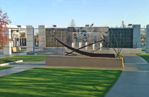 In 2008, the North Carolina Legislature approved Senate Bill 1611 to fund $13.7 million to construct the North Carolina Veterans Park. The site of the five-acre park is Fayetteville, and it honors all veterans, living or deceased, from all the U.S. services. The lead designer of the park was Sal Musarra, PLA, LEED AP, vice president of Kimley-Horn and Associates in Raleigh, N.C. Master planning was by URG/Kimley-Horn. The Visitor Center was designed by Clearscapes. In addition to the Visitor Center, the park elements include a Service Ribbon Wall; Story Garden; Reflection Garden; Community Plaza; Service Plaza; Patriot Wall; Pride and Purpose Tower; 150-seat amphitheater; Iron Mike Monument; the Gen. Hugh Shelton statue; seven water features; and the North Carolina Soils Wall, built with soil from each of the state's 100 counties. "Soil" is part of the memorial's storyline, which reads: "From the soils of North Carolina, you left your families and homes with purpose to serve your Country. The people of North Carolina Honor your service and welcome you home."