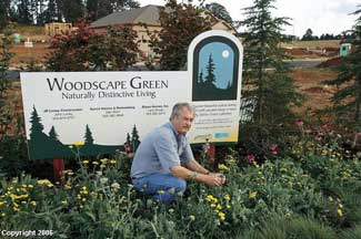 One of the central designs of Woodscape Green is landscaping with hardy, native plants. ?EUR??,,????'??Native plants are drought resistant and take less maintenance,?EUR??,,????'?? says Miller. ?EUR??,,????'??Homeowners will use less water and spend less on their sewer and water bill. What could be better?