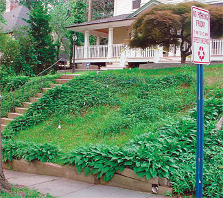 This attractive Victorian home in a well-healed Hackensack neighborhood looked down on a 45-degree slope with a deteriorating railroad tie wall and overrun with weeds, crab grass and hosta. Lack of adequate drainage also made erosion a problem. Green Earth met this challenge by creating an impressive, albeit labor intensive, hand-chiseled four-tiered wall of Pennsylvania fieldstone, a structurally sound and attractive means of retaining the property’s steep front slope and showing off the classic lines of the home. Each tier is accented with a colorful variety of perennials, seasonal annuals and flowering shrubs.