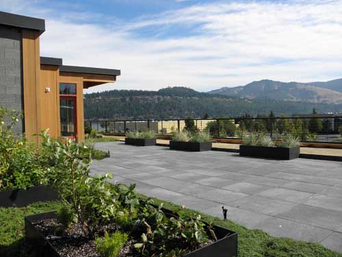 Turtle Island Foods has topped off its new production facility in Hood River, Oregon, with a 1,400-square-foot green roof. The project completed a landscaped green space on the facility's rooftop, overlooking the Columbia River.