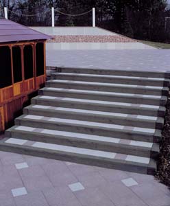 Since the tiles and pavers are dimensionally consistent, Contractors are able to achieve a uniform installation that contributes to a flush, finished look. Pavers are normally laid with 1/8" to 1/16" spacing and are compacted gently with a rubber hammer. After the installation is complete, sand is swept into the cracks with a broom. Sand set installation is ideal for areas that experience severe freezes and thaws because the spacing allows the pavers to move slightly. If repairs are ever necessary or work needs to be done below the deck surface, the paving stones can be removed and re-installed with minimal effort and cost.