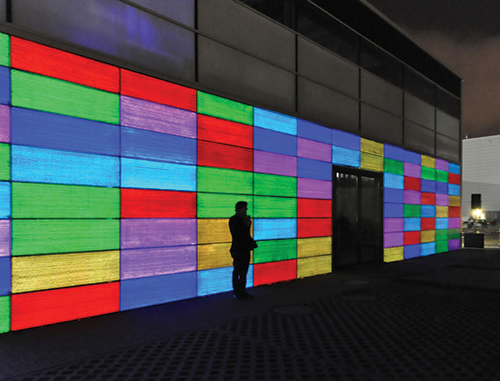Abilities: Concrete fa?????ade's embedded LED panels display colors, text and logos