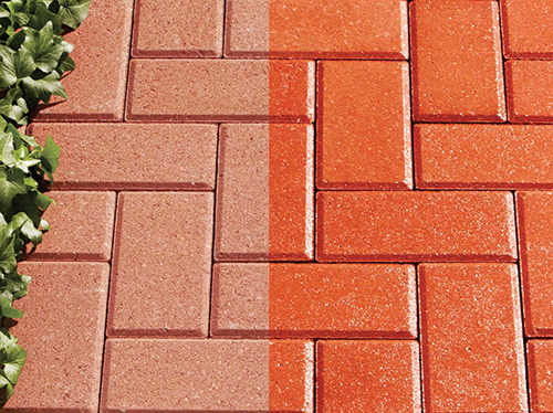 Lopez cautions against using sponges and rags, and "High pressure sprayers are not recommended because you tend to overspray." Allow 30 to 45 minutes between coats or until the surface is dry. "Most of the products take two to three coats," adds Lopez. For the topicals, surface traffic may begin 12 hours after final application. The area has to be kept dry for a minimum of 12 hours; full cure is achieved in 24 to 48 hours. For the sealers, allow each coating to penetrate the surface for 15 to 20 minutes while brooming it into the surface. A full cure is achieved in 24 to 72 hours but use of the area may resume in 6 to 8 hours. If use must resume sooner, cover with red rosin paper. If there is a possibility of rain within the 72-hour cure time, cover the surface so it remains dry. Lopez suggests a weekly routine of cleaning with a gentler product like their daily masonry cleaner to prevent build up. Its neutral formula will not harm or remove existing sealers, finishes, or waxes. New Installations For concrete driveways, Lopez says that the daily masonry cleaner can used first but cautions that, "We don't want to feed too much moisture on to a brand new driveway because you can create efflorescence issues." Phelan adds, "If you just put the concrete down, you want to make sure that there is no debris on the ground so you can dry sweep." If the high gloss color enriching sealer is selected, the fresh concrete slab requires a minimum of 28 days to cure before applying the product. For a new paver patio, "I would just dry brush and then determine if you want to have high gloss, semi-gloss, no-gloss but color enriched, or preserve the natural look," says Lopez. "For sidewalks you want to be more mindful. If you are on the East Coast you do deal with a lot of de-icing salts, so you might want to use the saltwater resistant sealer." For new installations with grout, the high gloss sealer can be applied as soon as 72 hours after grouting. Some final application tips involve working on vertical surfaces. For the enhancer and topicals, Lopez suggests starting at the bottom and proceeding up to help limit drip marks. And what about working on vertical and horizontal surfaces in the same installation? "My preference would be to do the horizontal first, let that cure out, and then attack the vertical," Lopez says. "But if you do the vertical first, you can do the horizontal the same day."