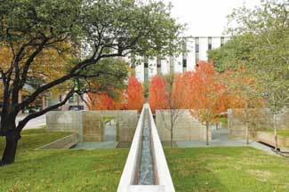 The Henry C. Beck, Jr. Park, built in 2004, is a vest-pocket, infill park. It is a private project for public use in the tradition of Zion and Breen’s Paley Park in its size and intimacy. This park is a retrofit to the 1965 modern, white, marble-clad building and is a tribute to Henry C. Beck, Jr., one of Dallas’ great and innovative contractors. Bush-hammered concrete, found in Beck Park, is an example of his contribution to the building world.