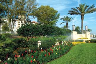 Another feature, called RainWatch, makes adjustments according to the rain bucket. According to Tim McColgan, Gaylord Palms horticulture manager, the irrigation system can be programmed so that if they get one-half-inch of rain all the zones will turn off. This is essential because, from a PR standpoint, nobody likes to watch an irrigation system run when it?EUR??,,????'???s raining. The program has the ability to pause the system while it?EUR??,,????'???s raining, but it knows it still has to complete the irrigation requirements for zones. Central Florida experiences both heavy downpours and misting rain. RainWatch enables the system to tell what type of rain the site is receiving and adjusts irrigation according to the requirements for their soil type.