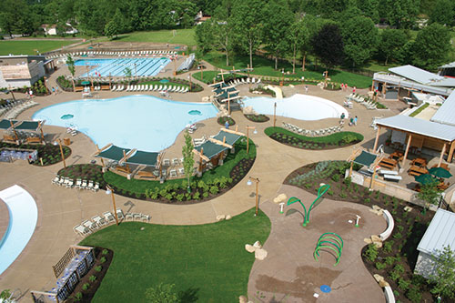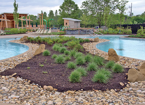 Buck & Sons Landscape Service, Inc.'s Highland Park project in Westerville, Ohio updated an existing pool with a unique 8-arce aquatic park to include a natural feel with slides, a lazy river, and a competition pool. Taking one year to finalize, the landscape was completed using only eight workers.