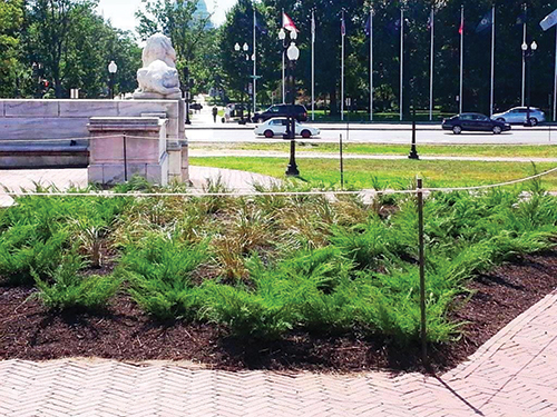 In celebration of National Public Lands Day, Union Station's Columbus Plaza recently received a complete face lift. Project EverGreen, Ruppert Nurseries, the Union Station Redevelopment Corporation, and the National Park Service, organized and supported station partners and community volunteers as they enriched the garden at Union Station, located in Washington, D.C. Restoration efforts included laying new grass seed, weeding, mulching, power washing the hardscape and more to provide Union Station with the grand entrance it deserves. Union Station and the Columbus Plaza facing the station's main entrance are uniquely situated in one of the city's busiest and most historic addresses at the foot of Capitol Hill. Union Station Redevelopment Corp. funded the plants' costs and coordinated the participation of more than 20 staff and community volunteers to install the plantings in collaboration with NPS, Project EverGreen and its contractor volunteer partner, DC area-based Ruppert Nurseries, which delivered the nursery stock and mulch, and donated onsite crew labor and project oversight of USRC volunteers. NPS National Mall staff provided the removal of dead plants, site preparation and tools needed by the nearly 30 combined donor volunteers at the Columbus Plaza Garden. The in-kind donations of nursery stock, organic materials, equipment, and labor preparation and planting from all of the participating contributors totaled more than $30,000 in value. "Given the sheer scope of this landscaping enhancement, we're grateful to our volunteers, the NPS staff and Project EverGreen's partnership with Ruppert Nurseries, without whom this needed restoration of Union Station's Columbus Plaza Garden would not have been possible," said Corinne Schieffer, outreach and communications manager at USRC. Project EverGreen also worked with Ruppert Nurseries, the German Embassy and the National Park Service earlier this year to revitalize the German-American Friendship Garden at the Washington Monument entry. "Preserving and enhancing national green space treasures, like the Union Station's Columbus Plaza or the German-American Friendship Garden, is part of Project EverGreen's mission to promote the value of well-maintained green spaces," said Cindy Code, Project EverGreen's executive director.