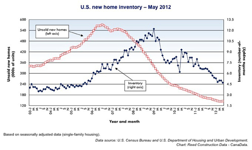 In February, the inventory of unsold new homes fell to a 4.9-month supply, and has remained below 4.5 ever since. With inventory levels back to historical averages ?EUR??,,????'??? even though demand and construction remains well below healthy market levels ?EUR??,,????'??? economists are predicting that 2012 will finally mark a resurgence of the housing sector as a source of positive growth for the economy.