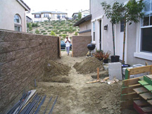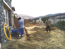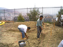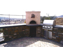 Legends in Landscape was hired to create a unique landscape design for the Graffius family in San Clemente, Calif. They love to entertain and cook for their large family and group of friends. Family gatherings of 20 or more people are common for this couple. Their greater than 3,000-square-foot early California Craftsman-style home left little room on the property for the outdoor rooms they wished to create. Since the home is raised on a hillside, the views of the ocean and valley could not be obstructed. In the afternoon sun exposure in the kitchen and family room made indoor dining and entertaining impossible. The home has several interesting angled exterior walls with accents of mortared manufactured stone. Rough-sawn wood trim accents the home. Design Phase ?EUR??,,????'???? Front Yard One major challenge of this project was to improve the first impression created by a large, plain garage wall. To create an interesting first impression, we designed a masonry and wood fence/wall that incorporated the architectural elements of the home into the front landscape. The 30-foot fence/wall was designed with four pilasters each 10 feet apart. Each pilaster was to have the same angle as the home. Eighteen-inch walls connected the pilasters. The walls and pilasters were to have the same stone as the home and caps to match gray concrete trim surrounding the windows. Wood fencing to match the wood balconies on the home would top the walls. To balance the front hardscape, a fifth pilaster was added to the opposite side of the driveway. ?EUR??,,????'???? Side/Rear Yard The back yard was a bigger challenge. This long and narrow back yard needed space for an outdoor kitchen as well as an entertainment area. We also needed to consider the great view of the ocean and valley, the difficult western exposure in the windows, and a desired lawn area. The customer also had a large side yard that we were able to take advantage of. Multiple outdoor rooms were created for the side/rear yards. - Kitchen/Dining Room - Corner Window/Patio Cover - Family/Entertainment Room - Breakfast Nook - Utility Area ?EUR??,,????'???? Kitchen/Dining Room A 90-degree-angle pizza oven/barbecue grill combination was designed for the outdoor kitchen area. The 7-foot tall pizza oven was designed to reside in the intersection of two 7-foot counters on a 90-degree angle. One of the countertops contained the barbecue unit, the other a sitting area. The sitting area was designed so the guests were facing the chef. A step and raised area around the rear of the counter was created. For the countertop, the customer chose polished deep gray concrete to match their house trim rather than tile or slab tops. Manufactured stone faced the unit below counter level in the front. Stucco to match the home was used above the countertop of the unit. ?EUR??,,????'???? Corner Window/Patio Cover The western exposure inside the home prevented afternoon television viewing within the home as the setting sun was so bright. To minimize the exposure while maintaining the light and airy feeling of the room, we designed a patio cover that wrapped around the corner of the house. This 10-foot wide patio cover followed the rear of the home and made two 45-degree turns as it moved from the front to the side of the home. To maintain the Craftsman style, the patio cover was designed for construction on top of four 3-foot pilasters matching the fence in the front. The corbels at the ends of the joists were milled to match the trim on the eaves. Rough-sawn cedar painted the color of the house trim was used on the wood structure. ?EUR??,,????'???? Family/Entertainment Room For evening relaxing and family entertaining an outdoor family room was designed. The customer requested an outdoor fireplace as the focal point of this area. They had a picture of a fireplace with curved lines that they wished to incorporate. To use the desired curved lines and still try to maintain the Craftsman style, we added straight lines around the firebox, a straight, thick, custom, grey concrete seating area around the fireplace at 90-degree angles similar to the shape of the outdoor kitchen, and added the home?EUR??,,????'???s manufactured stone to the lower 18 inches of the fireplace/entertainment area. Stucco to match the home was used above the seating area similar to the outdoor kitchen. ?EUR??,,????'???? Breakfast Nook Along the side yard, we created a small area for relaxing in the morning. A future fountain that can be viewed from an inside office will also add to the quiet retreat in the breakfast nook. ?EUR??,,????'???? Utility Area We designed the side area near the garage as the utility area. While the majority of the patio material was to be interlocking concrete pavers, the utility area was designed for concrete. Here the customer is able to hose the area and avoid problems with sand, etc. Materials Rebar, rebar, and more rebar. When constructing 7-foot masonry structures in an area where the soil expands and contracts continuously due to the effects of earthquakes, they need to be built carefully. Although 6- by 8- by16-inch concrete cinder blocks would pass city inspections, we used 8- by 8- by 16-inch blocks on the project. More than 200 square feet of the El Dorado brand manufactured stone, Meseta fieldledge, was used in the front and rear yards. This product is manufactured from light aggregate, Portland cement, and permanent mineral iron oxide pigments. This stone was used on the front pilasters and fence, the rear pilasters for the patio cover, the pizza oven and the fireplace. Although not always necessary, this stone was mortared to match existing mortar on the home. Manufactured stone is commonly used in construction today due to its lower cost and high quality. Rather than building a masonry firebox for the fireplace, a Heatilator manufactured outdoor fireplace insert, the Out42, was chosen for its size and stainless steel components. It is UL Listed for safety and qua
