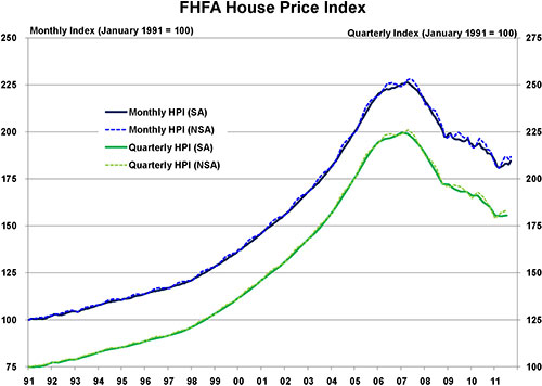 House prices continued to improve in the third quarter, with both major indexes achieving modest gains. The Federal Housing Finance Agency's purchase only house price index (HPI) rose 0.7 percent and the Case-Shiller U.S. National HPI inched up 0.1 percent from its second quarter level.