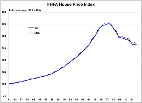 Expect house prices to remain relatively flat, with no further significant declines, over the remainder of 2011. Anticipate steady, albeit modest, gains through 2012 and 2013.