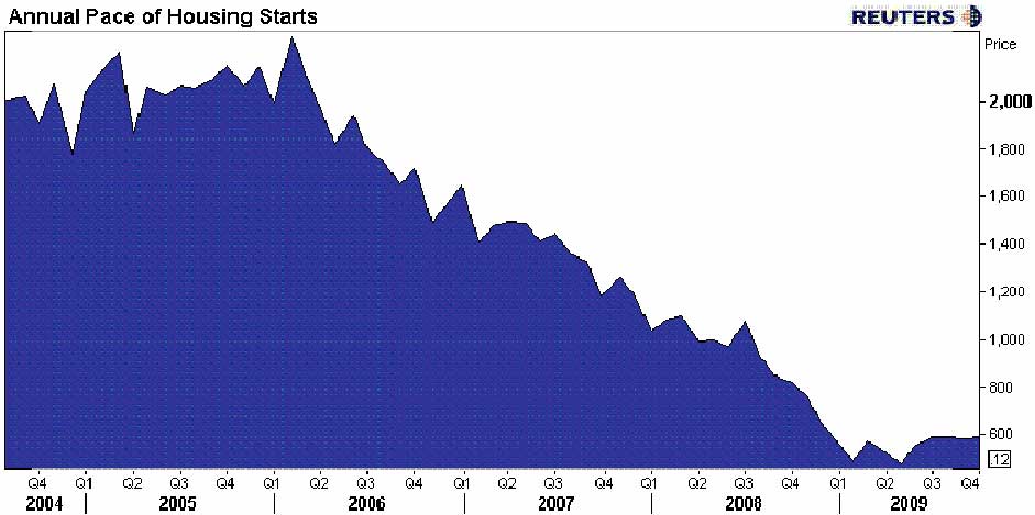The Midwest increased its housing starts 15.5 percent from December 2008 to December 2009, but decreased 18.5 percent during the past month. For the Northeast both those figures were at a decrease of 19 percent. Look for housing completions to be on a short downward trend for four to six months from now. ?EUR??,,????'?????<???????????????????????(R)??????oe Courtesy of Economics & Statistics Administration