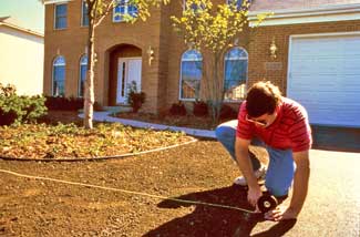 On a bright, sunny day, bare soil can easily reach 130 degrees F. Sod that has just had about 80% of its roots cut off can?EUR??,,????'?????<???EUR?t absorb water efficiently, and the remaining roots are exposed. This spells disaster, known as ?EUR??,,????'?????<?root stinging?EUR??,,????'?????<? or heat stress. The grass may turn an off-color green or brown as it goes dormant, and it won?EUR??,,????'?????<???EUR?t produce any significant new root growth. To avoid this possibility, thoroughly wet the prepared soil to about three inches deep, 24 to 48 hours prior to sod installation. When you start to install the sod, the soil surface will be dry enough to work on, and the moisture in the soil will migrate up to meet the newly installed sod. What?EUR??,,????'?????<???EUR?s more, you won?EUR??,,????'?????<???EUR?t have to apply as much water after installation, and the sod won?EUR??,,????'?????<???EUR?t go dormant.